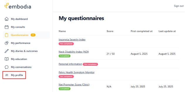 If you would like to change your personal information on your account (such as your name, email address, username, time zone, password, etc.), sign in to your account from a web browser and then click on my My profile: